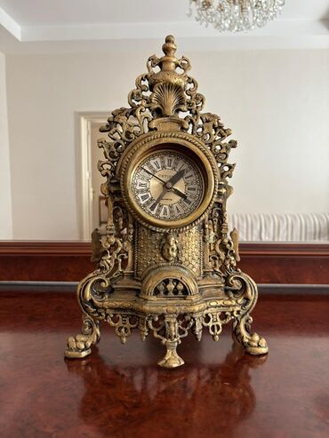 - Saat: iri siferblat, Roma rəqəmləri, zəngin oyma gövdə, stabil ayaqlar