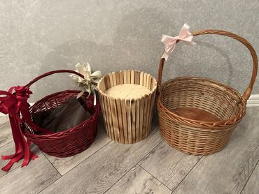 - 3 ədəd dekorativ səbət və 1 ədəd silindrik taxta qab.