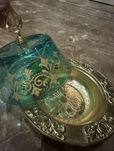 Metal bə şüşədən konfet , çərəz qabı