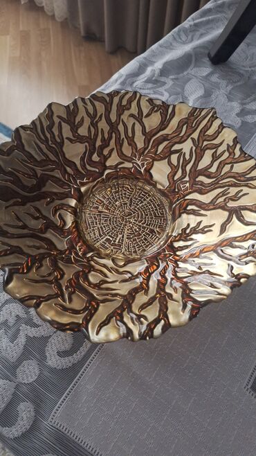 2) Qızılı-bürünc tonlarda dekorativ boşqab: