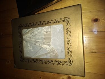 - Masa örtüyü dəsti: qızılı-krem tonlarında naxışlı parça, pencərəli qutuda təqdimat. Tək rəngli zərif ornamentlər süfrəyə klassik görünüş qatır.
