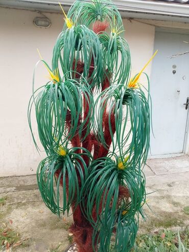 - Material: elastik plastik yarpaqlar (tünd yaşıl), lifli dekorativ “gövdə” (qırmızı-qəhvəyi tonlarda).