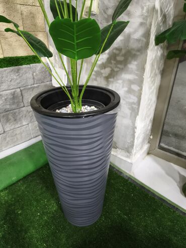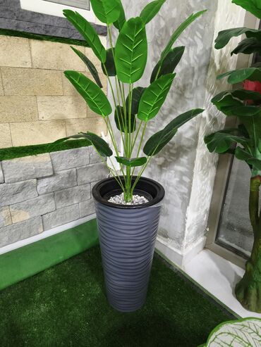 Dekorativ süni bitki və hündür dibçək - Bitki: iri, parlaq yaşıl