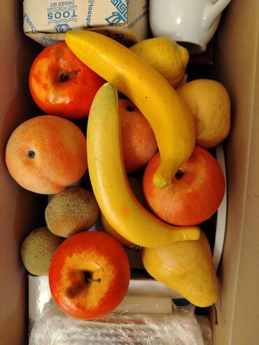 - Komplektdə müxtəlif növ maketlər: banan, alma, armud, limon, şaftalı və kiçik kivi formalı meyvələr var. Bayramlarda bəzək olaraq , vitrin, fotosessiya.,restoran/kafe vitrinləri, ev interyeri və səhnə dekoru üçün uyğundur