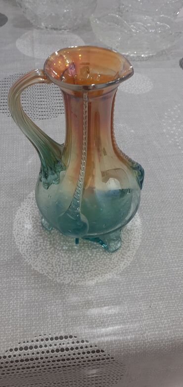 Məhsul: İrideks örtüklü dekorativ şüşə qablar dəsti. SSRİ dönəmindən qalıb! Hamısı birlikdə 20 manat! Təsvir: - 4 ədəd şüşə qab: 2 ədəd qulplu sürahi/formalı qab və 2 ədəd vaza. - Material: qalın,...