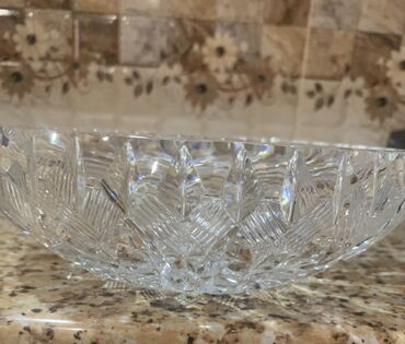 Dekorativ məqsədlər üçün nəzərdə tutulmuş, təmiz billur bu qab, istənilən mühitə zəriflik qatır. Onun dərin oyma naxışları və mürəkkəb dizaynı ilə zənginləşdirilmiş səthi, işığın müxtəlif bucaqlardan əks olunmasını təmin edərək göz oxşayan parıltı yaradır. Qabın geniş ağzı və dayaz forması onu meyvə, şirniyyat və ya digər dekorativ əşyalar üçün ideal edir. Həm funksional, həm də estetik cəhətdən xoşagələn bu qab, qonaq otağına, yemək masasına və ya vitrinə əlavə edilə bilər. Klassik görünüşü və dayanıqlı materialı uzun müddət istifadə üçün uyğundur.
