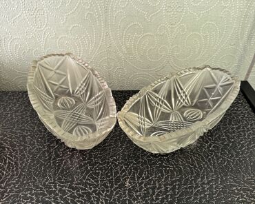 - 2 ədəd kəsimli şüşə boşqab: Oval forma, kənarları dişli, klassik kəsim ornamentləri ilə.