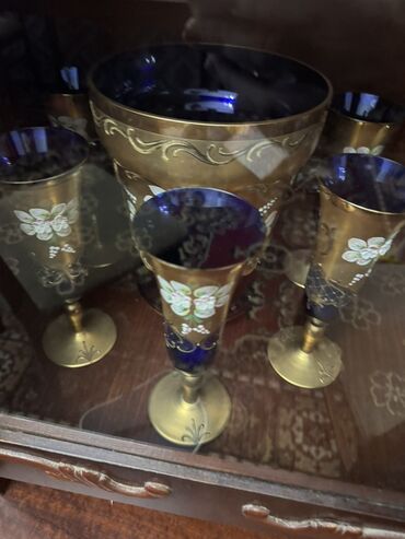 ,1 ci dest 30 manat 2 ci dest 30 manat 3 cü dest 60 manatadır hamısı təzədi Qızılı və kobalt dekorlu servis aksesuarları dəsti - Material: çini və büllur/şüşə - Rəng: tünd kobalt/mavi və yaşıl to...