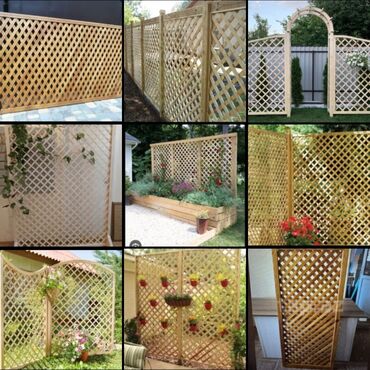 - Bağ və həyət dekoru: çəlləkdən gülqabı kompozisiyaları, dayaq-latı (reşotka) panelləri, arkalı keçidlər, məxfilik panelləri.