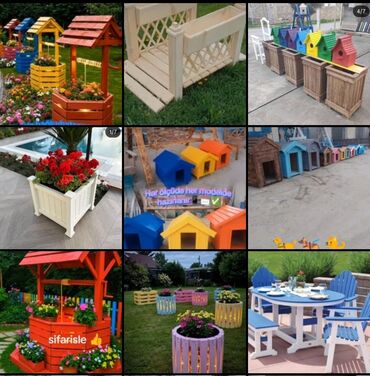 Качели 350 манат скворечники по 20 манат декор доя цветов 30 манат