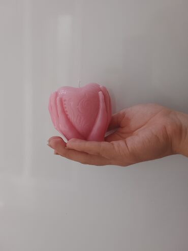 Ürünün təsviri: - Dekorativ şam - Forma: iki əlin tutduğu ürək - Rənglər: çəhrayı–ağ keçidli, yüngül parıltılı effekt - Material: parafin/şam mumu fitilli - Kompakt ölçü, masaüstü dekorasiyaya uyğu...
