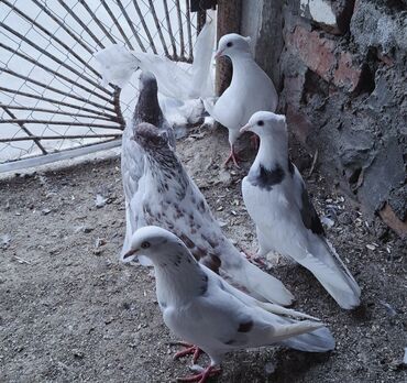 Ev göyərçinləri – cüt - Cins/Tip: Ev göyərçini (ikili cüt) - Rənglər: biri tam ağ, digəri tünd-qara/boz qarışıq - Gözlər: parlaq, simmetrik quruluş - Gaga: qısa və düz - Ayaqlar: çəhrayı-qırmızı, ...