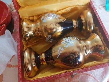 Böyük şüşə dekor dəst... hec bir problemleri yoxdu.tezediler. iwlenmeyib hamisi bir yerde 100 man.ayri- ayrida satilir. 2 eded konfet qabi 30. 2 eded guldan 40. bakallar 6 eded ve kampt qabi 40 ma...