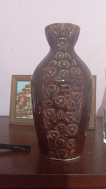 - 2-ci vaza: qəhvəyi keramikadan, parlaq şir ilə örtülmüş, dərin relyefli dairəvi naxışlar, geniş bədən və dar boğaz.