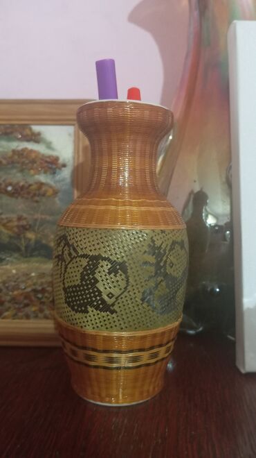 - 1-ci vaza: toxuma üslubunda silindrik–dar boğazlı forma, bədənində qara naxışlı zolaq, üst hissəsi qələm/qələmqabı kimi istifadə oluna bilər.