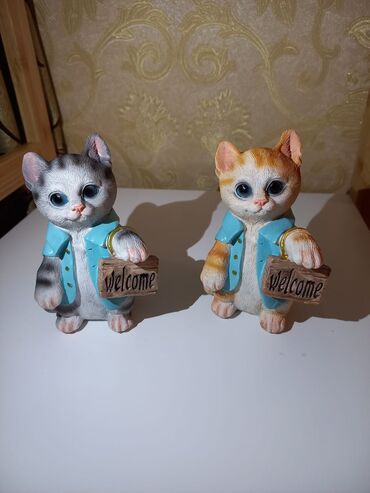Dekorativ “Welcome” pişik fiqurları Qiymet bir denesi ucun 15 azn cut alana endirim olunacaq - Material: polirezindən hazırlanmış dekor fiqurlar - Dəst: 2 ədəd – biri boz-ağ, biri narıncı-ağ pişik ...