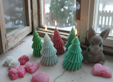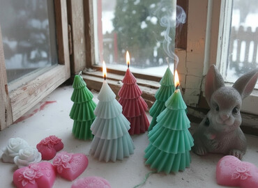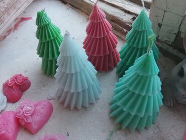 Məhsul: Dekorativ tematik şamlar Təsvir: - Əl işi dekorativ şam kolleksiyası: Yeni il mövzulu şam ağacı formalı şamlar, maral/los silueti, həmçinin qış məkanını xatırladan konus və üçbucaq formala...