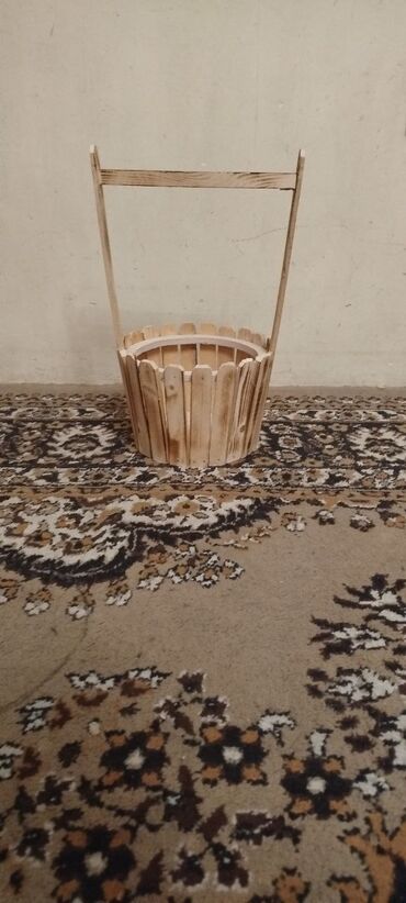 Dekorativ hədiyyə səbəti seti - Material: təbii ağac və bərk kartondan hazırlanmış çoxguşəli səbət; üstündə iri dairəvi tutacaq halqa - İçlik: ağ rəngli dekor kağız qırıqları və toxuma fakturalı k...