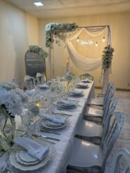 Şənlik çadırı və masa‑stul bəzədilməsi xidməti kirye maqr adr es beyleqan - Geniş, hündür tavanlı şənlik çadırları: məclis, nişan, toy, xına, yas və digər tədbirlər üçün. - Daxili dekor: yaşıl‑qır...