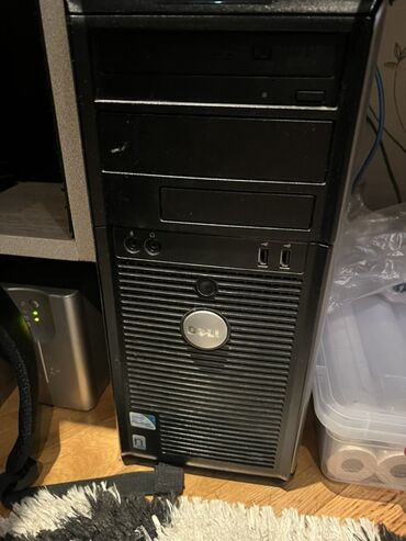 - Sistem bloku: Dell qüllə tipli korpus, ön paneldə 2x USB portu, qulaqlıq/mikrofon girişləri, optik disk qurğusu. Intel prosessor nişanı görünür.