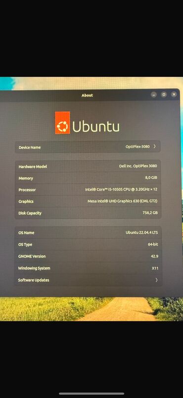 - Sistem bloku: İntel Core i5-10505 CPU 3.20 GHz x 12