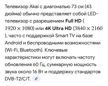 Lg markalı televizordur. Tam işlək vəziyətdədir. 85diaqnaldır Qiyməti 250 manat.