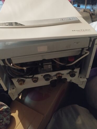 Demirdöküm Miniterm modeli qazan. Divara quraşdırılan bu ağ rəngli qazan, istilik təchizatı üçün nəzərdə tutulmuşdur. Ön panelində tənzimləmə düymələri və göstəricilər mövcuddur. Alt hissəsində su və qaz bağlantıları üçün çoxsaylı çıxışlar var. Evlərdə və digər yaşayış sahələrində istilik sisteminin qurulması üçün uyğundur.