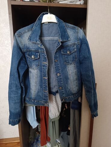 Qadın üst geyimləri paketi – 3 ədəd hər biri 15 azn 1) Açıq mavi cins jaket - Kapüşonlu, şnurla tənzimlənən - Ön hissə: fermuar bağlanma - 2 ədəd böyük düyməli sinə cibinə və yan ciblərə malik - B...