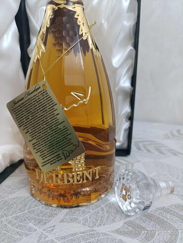- Şüşə: qalın şüşədən, bədənində üzüm naxışları və qızılı dekor elementləri. Ön hissədə “DERBENT” emblemi.