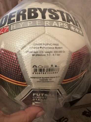Futbol topu - Rəng və dizayn: Ağ, boz və qara çalarlı ulduz naxışlı panellər. - Panel quruluşu: Çoxpanelli tikili, tikişli konstruksiya. - Material: Sintetik örtük (PU/PVC tipli), rezin kamera. - ...