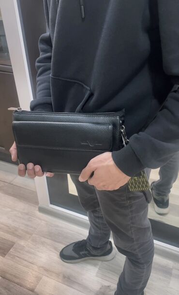 Şəhər üslubunu və rahatlığı birləşdirən kişi çiyn çantası - Material: toxumalı fakturalı qara/deri material (yumşaq, dayanıqlı). - Dizayn: minimalistik, kvadrat formalı korpus; ön hissədə kiçik me...