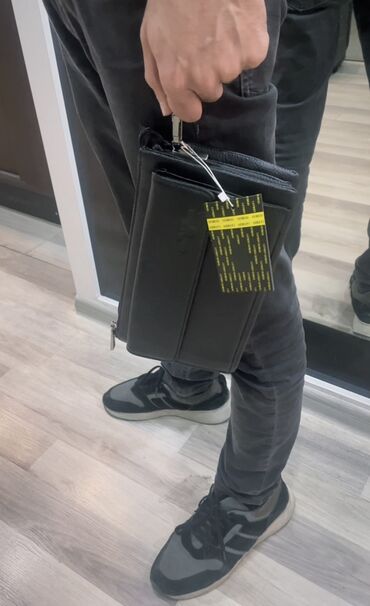 Qara rəngli kişi dəri əl çantası – zəncirbəndli - Material: teksturalı təbii dəri - Rəng: mat qara - Ölçü: kompakt, əlin içində rahat tutulur (bileklik qayışı ilə) - Dizayn: minimalistik korpus, ö...