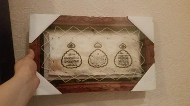 Kətan üzərində əl işi və üzərində boyadan əlavə parça işləmələri mövcuddur. Qiymətdə razılaşmağ olar