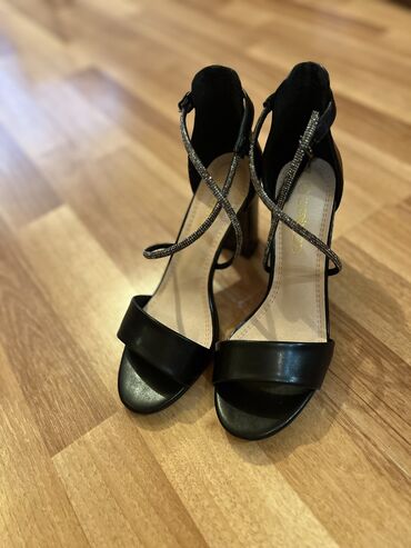 Deri dikdaban. Markası Beymen studio. 3-4 defe geyilib. 39 ölçü. Artık dikdaban geyebilmir deye satılır