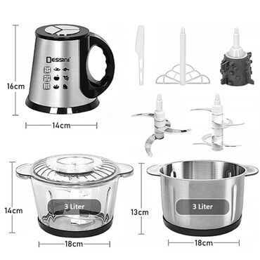 Dessini DS-967 2 qablı Blender– 800W Güc, 3L Şüşə Qab, Paslanmayan Polad və ABS Material, 3 Sürət, Çırpıcı ilə Çoxfunksiyalı Elektrik Doğrayıcı Brend: Dessini Model: DS-967 Gücün tənzimlənməsi:Bəli...