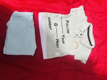 Uşaq üçün iki hissəli dəst - Ölçü: 9M (təxminən 9 aylıq) - Rəng/naxış: Açıq çəhrayı və ağ zolaqlar - Komplekt: Qolsuz kofta + şort - Dizayn: Asimmetrik ön büzgülü (volanlı) kofta, ətək hissəsində ...