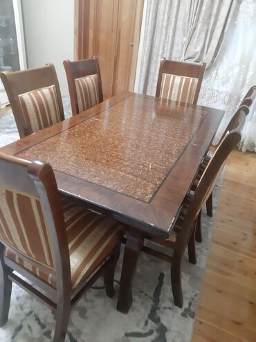 Qonaq otağı üçün, Yeni, Açılmayan, Dördbucaq masa, 6 stul