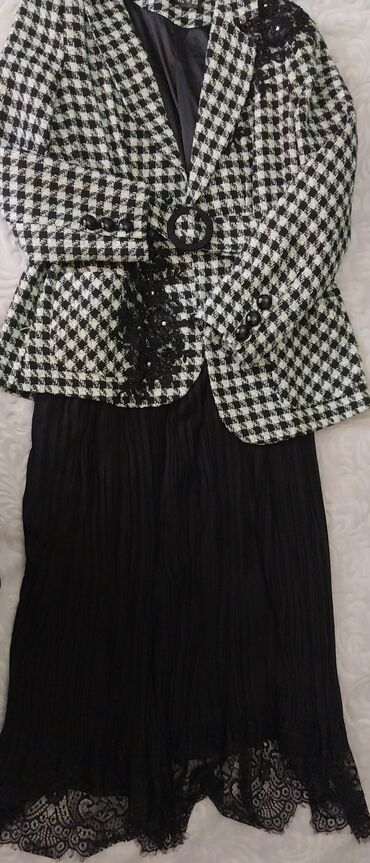 Brend kastyum..44/46 beden.Çox gözel kastyumdur.Uzeri uzorlu və gümüşü deri ilə işlemelidir.Heç bir deffekti yoxdur.380 manata alınıb,55 manata satıram.