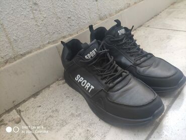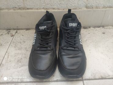 Kişi idman ayaqqabısı – zeytun-yaşıl rəng - Üst: sintetik dəri və tekstil kombinasiyası, tikişlərlə möhkəmləndirilmiş panellər - Rəng: zeytun-yaşıl, qara detallarla - Marka yazısı: yan hissədə “BO...