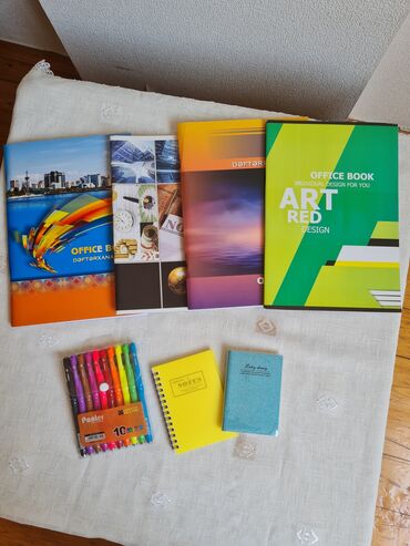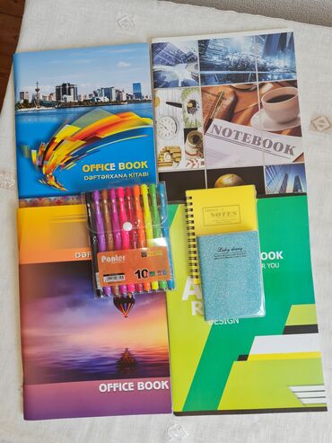 Hədiyyəlik set. Setə 4 ədəd dəftər ,10ədədli rəngli qələm dəsti və 2 ədəd not dəftəri daxildir. Hamısı birlikdə satılır. Ayrı-ayrılıqda satılmır. Qiymət 20 manat. 4ədəd A4 farmatlı dama-dama dəftər...