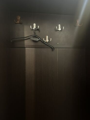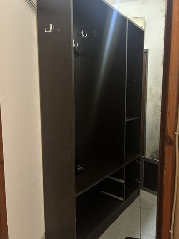Qarderob/Dehliz dolabı – tünd ağac rəngində, çoxfunksiyalı dizayn.