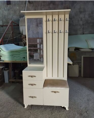 - Düzülüş: güzgülü panel, çoxsaylı metal qarmaqlar, oturacaq yeri