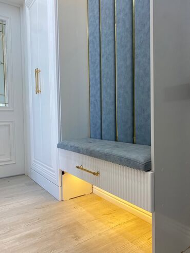 - Giriş, dəhliz və qarderob zonaları üçün funksional oturacaq+yatağan saxlama həlli.
