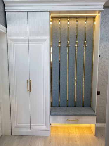 Klassik-modern üslubda dəhliz üçün kombinə edilmiş şkaf və paltar asqısı dəsti.