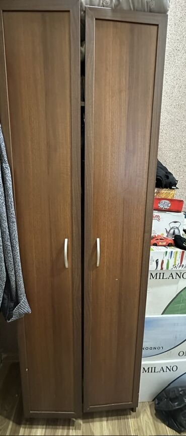1) İkiqapılı şkaf – şaquli formalı, metal tutacaqlar, üst hissəsi qapalı. Paltar və əşyaların saxlanması üçün nəzərdə tutulub.