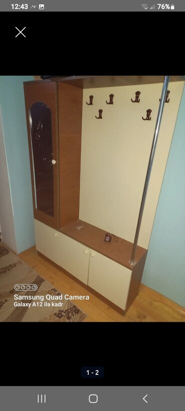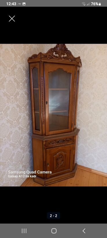 - Yan tərəfdə şüşə qapılı hündür şkaf (rəflidir)