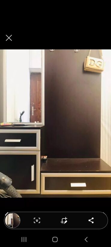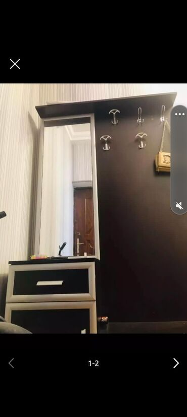 güzgülü və saxlama yerli mebeli. Bu mebel güzgü, asılqanlar, siyirtmə və qapalı şkafdan ibarətdir. Tünd qəhvəyi rəngdədir. Girişdə paltarları asmaq və kiçik əşyaları saxlamaq üçün əlverişlidir. * ...