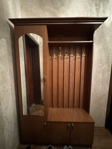 - Solda güzgülü şkaf: asılqan bölməsi və alt hissədə qapalı saxlama