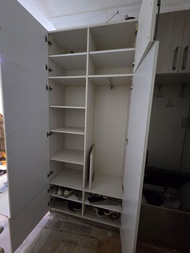- Material: laminat/MDFlam səthli korpus və qapılar, metal dəstəklər və asılqanlar