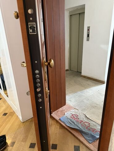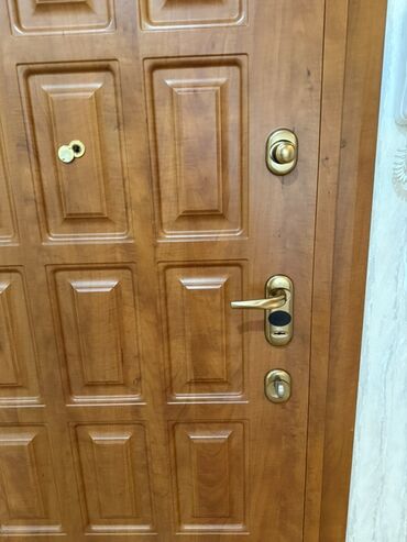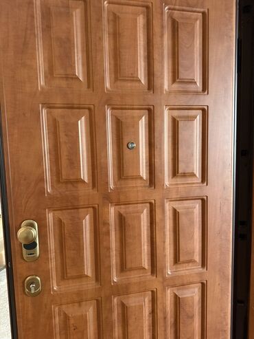 Qəhvəyi rəngli Türkiyə istehsalı etibarlı kale kilid sistemi və qapı dəstəyi 3 petləli olan mənzilin üstündən çıxan təzə kimi olan qapı satılır .Sağ tərəfdən çölə açılır .